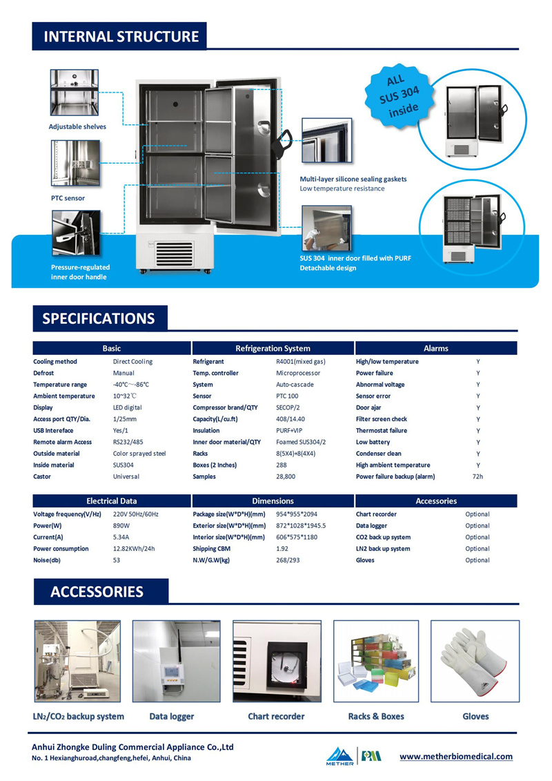 Minus 80 degrees Cryogenic Biomedical Ultra Cold Vaccine Storage Cabinet Freezer with 408L